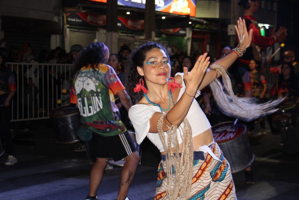 Sin embargo, la gran sorpresa de la noche llegó con el imponente despliegue de la organización de samba. Con un derroche de brillo, plumas y una energía contagiosa, los bailarines realizaron un espectáculo coreográfico de alto nivel que hizo vibrar a los asistentes. El ritmo envolvente de los tambores y la destreza de las passistas contagiaron al público, que terminó bailando al compás de la música carioca en plena vía pública.