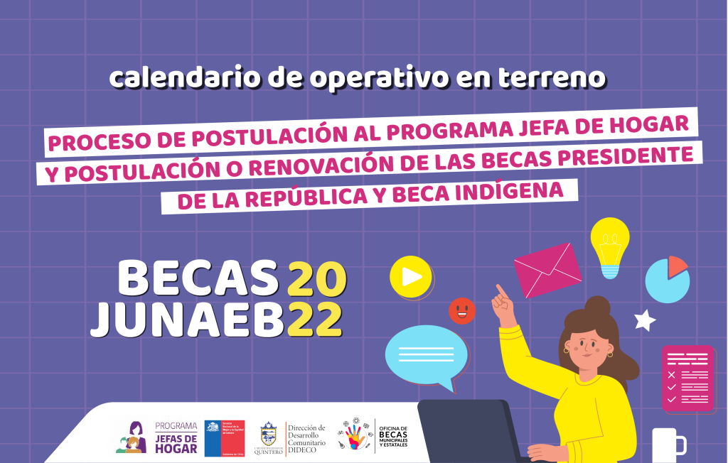 Estimada comunidad, lo invitamos a participar de los operativos en terreno que realiza la Dirección de Desarrollo Comunitario para facilitar la Postulación a Becas JUNAEB, puntualmente Beca Presidente de la República y Beca Indígena; además de la Postulación al Programa Mujer Trabajadoras y Jefas de Hogar. Las visitas a terreno se llevarán a cabo desde […]